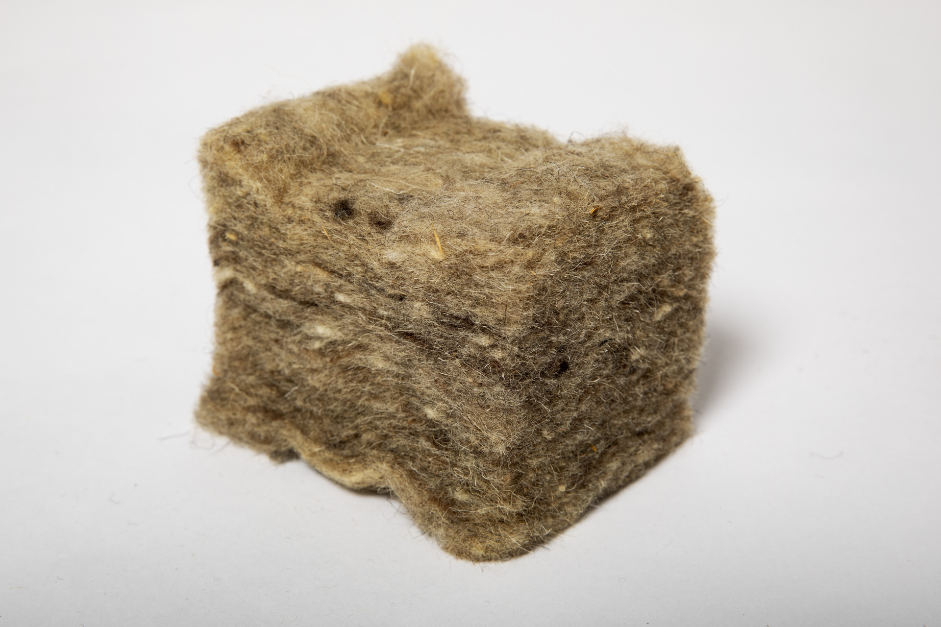 De foto toont het isolatiemateriaal schapenwol. Dit product van Isolena is een uitzondering: schapenwol als isolatie is een afrader.